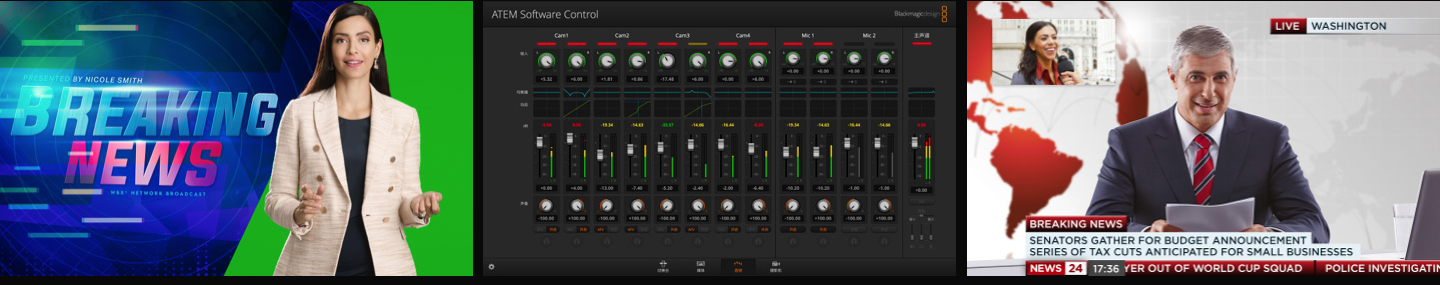 根据具体使用的型号,ATEM Mini还支持将流媒体数据直接录制到USB闪存盘或CFexpress卡上!这意味着您将获得更长的录制时间,以及与流媒体播出一样带有AAC音频的H.264视频文件,从而直接上传到YouTube或Vimeo等各类视频网站。配合使用USB集线器或Blackmagic MultiDock时,设备还支持连接多个硬盘。当一个硬盘录满后,设备会自动跳转到下一个硬盘上继续工作,实现不间断录制。录制设置和硬盘选择可以通过ATEM Software Control进行设置,并且可通过内置的多画面分割显示录制状态。连接Blackmagic Pocket Cinema Camera时,您甚至还可以远程触发摄影机的录制功能!